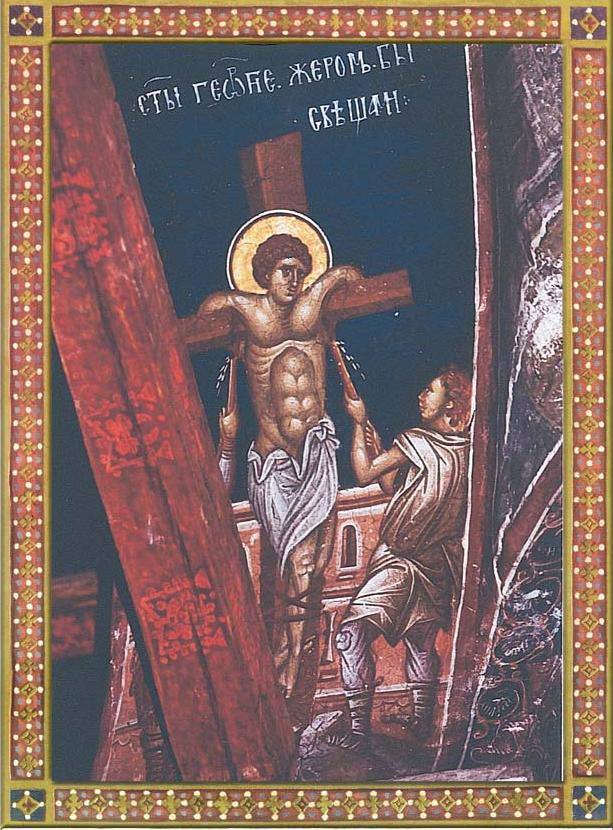 Γεωργηθείς ὑπό Θεοῦ ἀνεδείχθης, τῆς εὐσεβείας γεωργός Τιμιώτατος, τῶν ἀρετῶν τὰ δράγματα συλλέξας σεαυτῷ· σπείρας γὰρ ἐν δάκρυσιν, εὐφροσύνῃ θερίζεις· ἀθλήσας δὲ δι᾽ αἵματος, τὸν Χριστόν ἐκομίσω· καὶ ταῖς πρεσβείαις Ἅγιε ταῖς σαῖς, πᾶσι παρέχεις πταισμάτων συγχώρησιν.